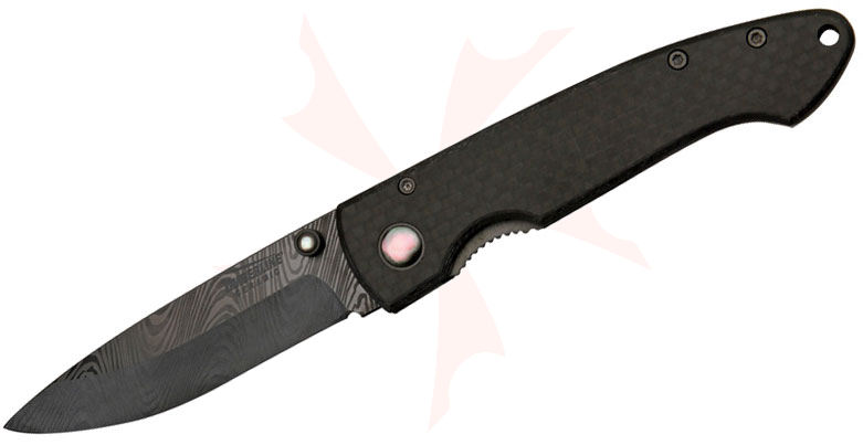 Timberline Ceramic Folding Knife 2.75" Damascus Pattern Mirror Polish Blade, Carbon Fiber Handles, Liner Lock - 8014