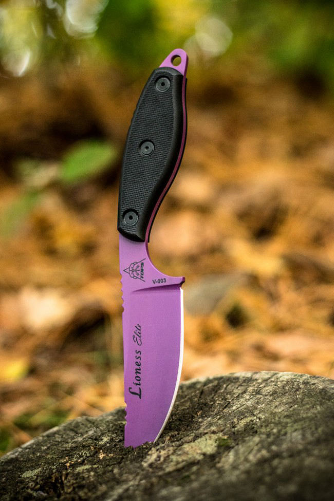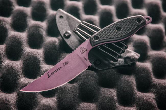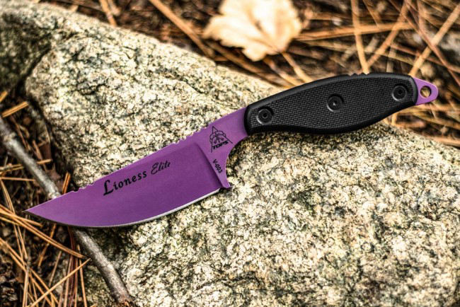 TOPS Knives Lioness Elite Fixed 4.13" Purple 1095 Blade, Black G10 Handles, Kydex Sheath - LION-ELT