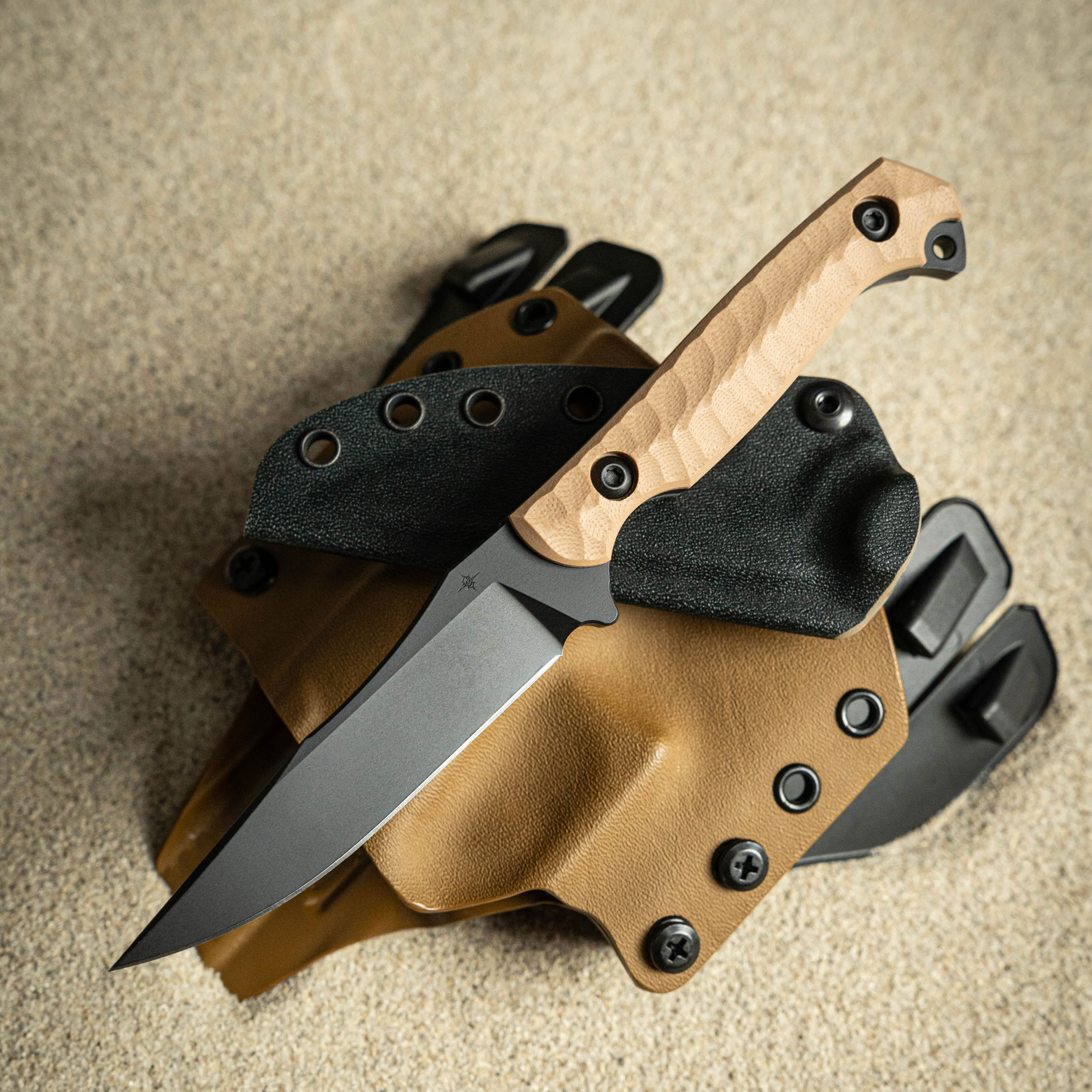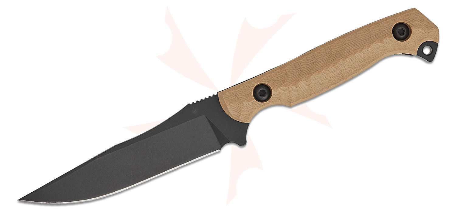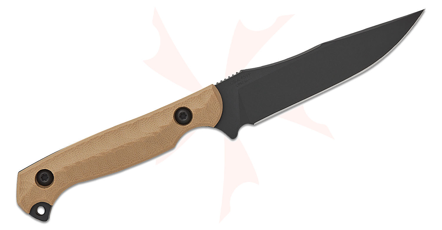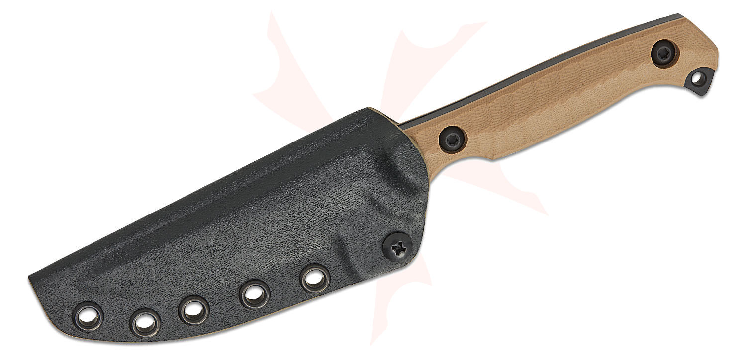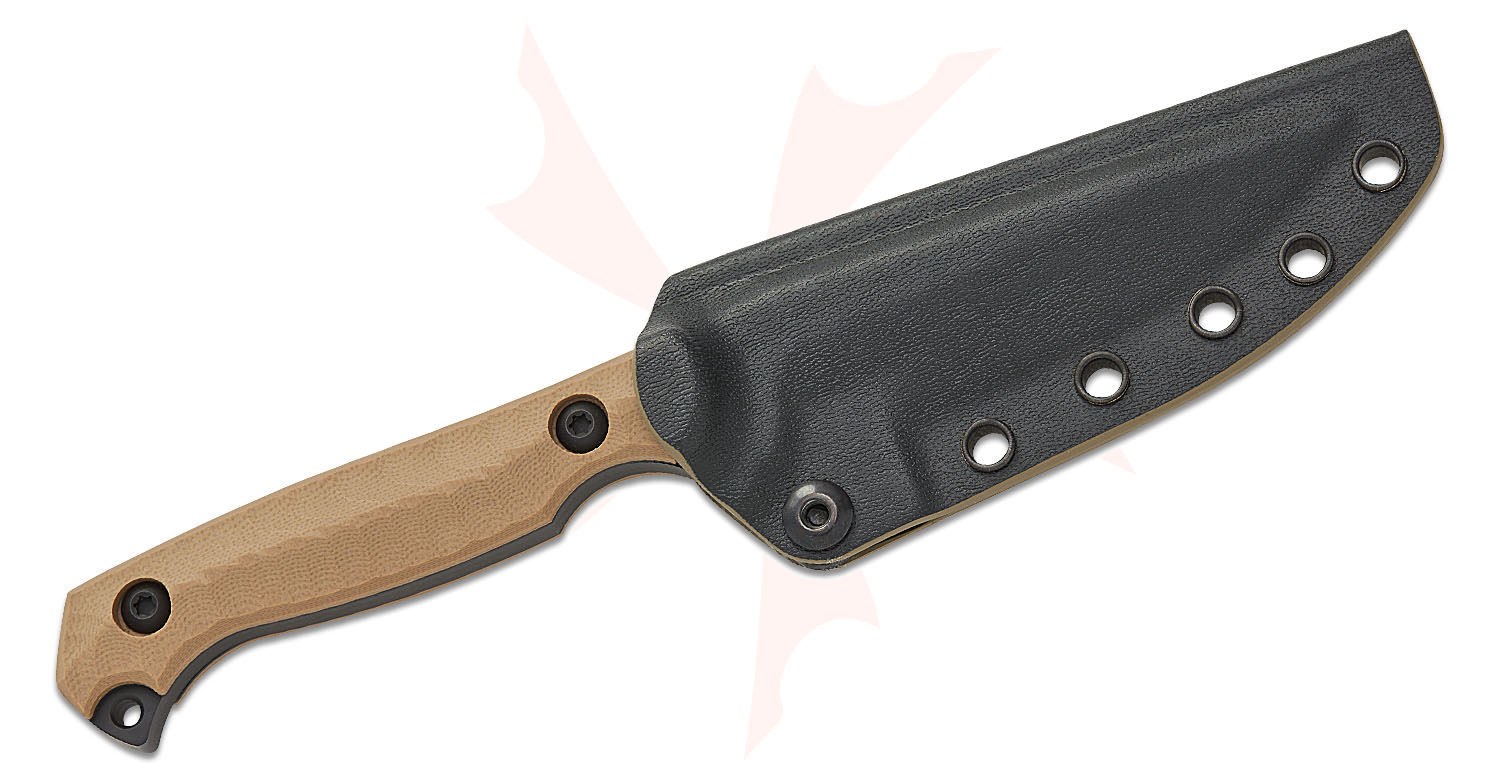 Toor Knives Krypteia S Fixed Blade Knife 4" CPM-M4 Black KG Gunkote Drop Point Blade, Milled Flat Dark Earth G10 Handles, Tru-Hide Kydex Sheath - Krypteia S FDE