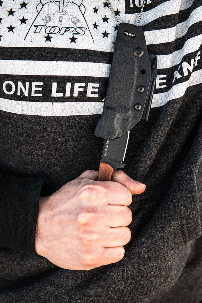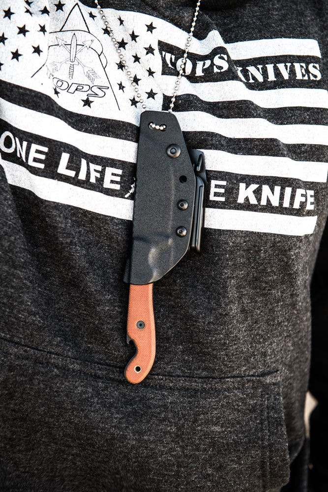 TOPS Knives, Tops Fixed Blade Knives Series, 1095 Blade Steel, Micarta Handle Material, Fixed Blade Knives, Fixed Blade Knives Hunting, Made in USA, Leo Espinoza