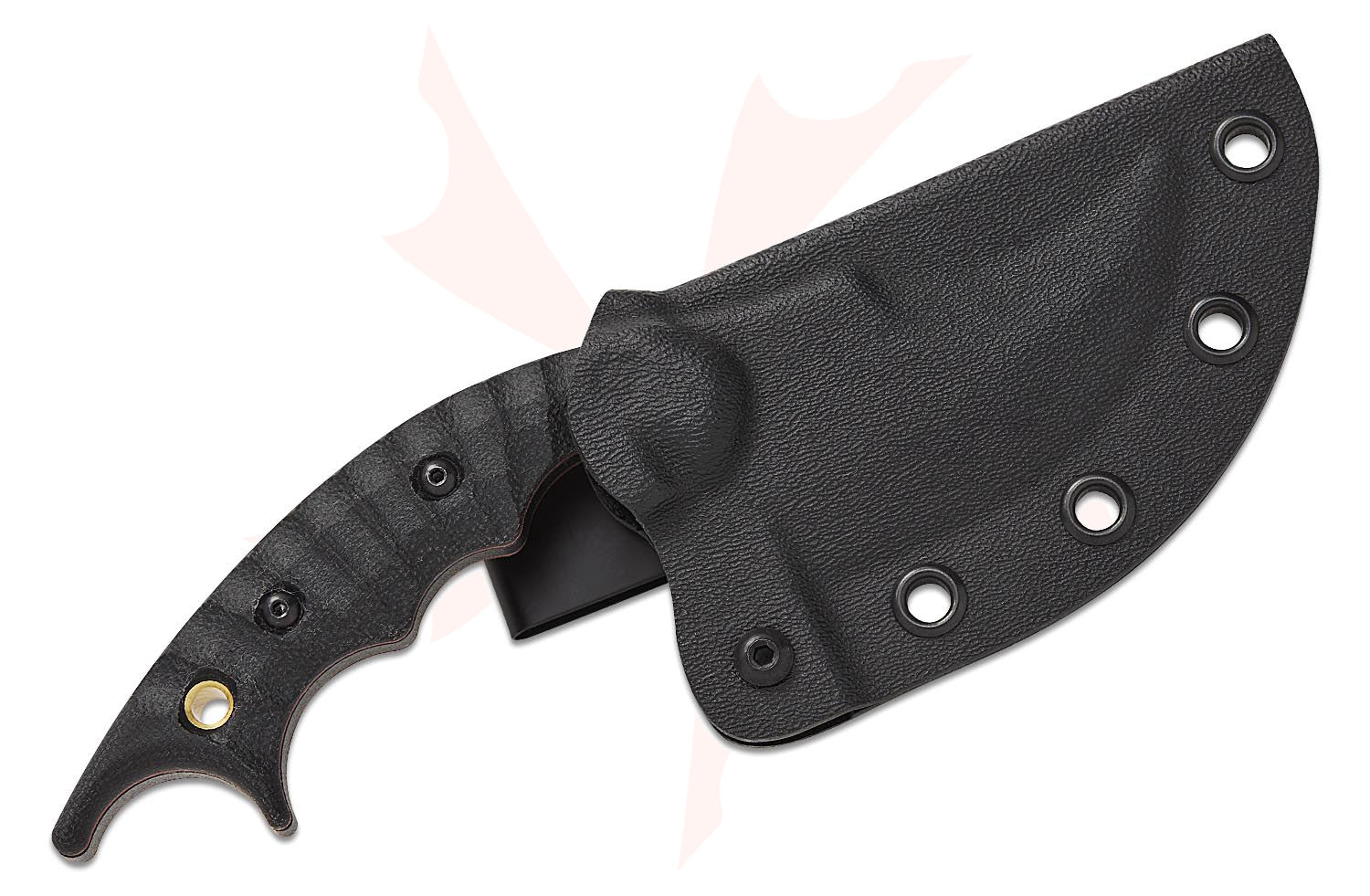 The Upswarm is a purpose-built self-defense knife designed for deep concealment and decisive performance in close quarters. Inspired by karambit handling but reimagined without a full finger ring, it offers a secure, adaptable grip in both forward and reverse positions, without the risk of finger entrapment. Its knuckle duster–influenced handle naturally locks into your hand, giving you confidence and control when it matters most. With a 3" main edge and an optional 1.63" top edge, the Upswarm is optimized for fast, efficient slashes and thrusts in tight, high-pressure situations. Crafted from tough, easy-to-maintain 1095 high carbon steel and paired with Black Canvas Micarta scales featuring Coco-Drillo tread, it maintains a reliable grip even in wet or stressful conditions.