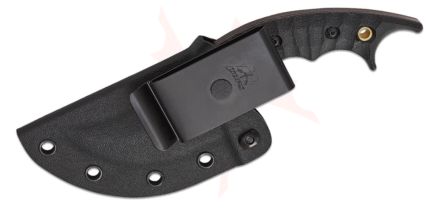 TOPS Knives Upswarm Fixed Blade Knife 3" Black Upswept Double Edge Blade, Black Canvas Micarta Handles, Kydex Sheath - TPUPSM02