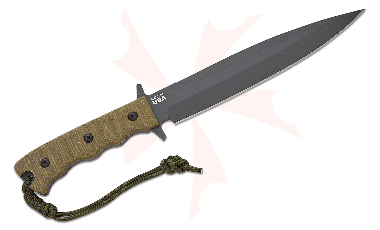The TOPS Wild Pig Hunter knife is a seriously hardcore design, the 8" blade is made for deep positive piercing penetration and is combined with a strong puncture point. Each blade is ground from 1/4 thick 1095 high carbon steel. To add to a highly functional blade, TOPS has enhanced the blade by adding the Sniper Gray finish. The handle is designed using green canvas Micarta and TOPS' well-known 'Rocky Mountain Tread' which ensures a positive grip even when in wet, muddy, or bloody conditions. The sheath is made in the USA of vegetable-tanned, tough steerhide.