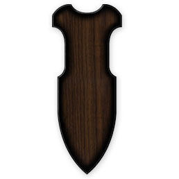 Wood with a woodgrain finish. Features metal hanging hooks that can be adjusted to fit almost any sword using the pre-drilled holes on the back. Includes mounting hardware and easy to use mounting instructions. Fits all Kit Rae swords. Swords not included. 10 1/2" x 25 3/4" x 3/4".