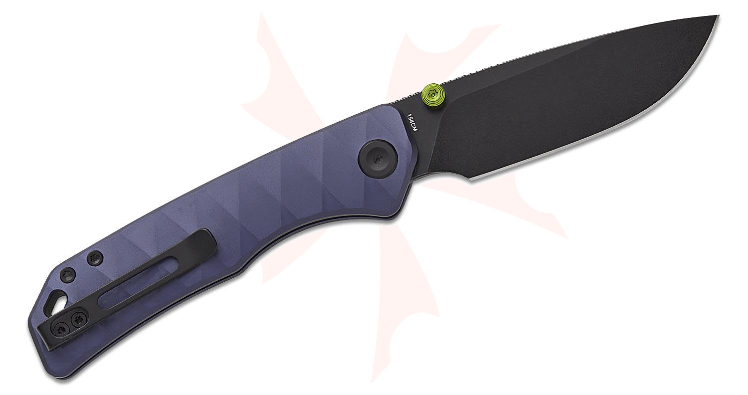 Vosteed Knives Marten 330 Button Lock Folding Knife 3.3" 154CM Black Stonewashed Drop Point Blade, Dark Slate Blue Aluminum Handles - A1615