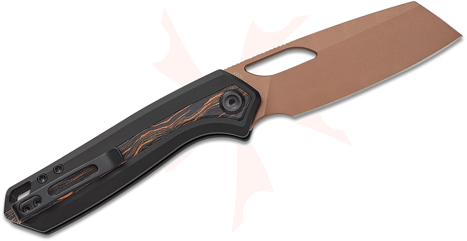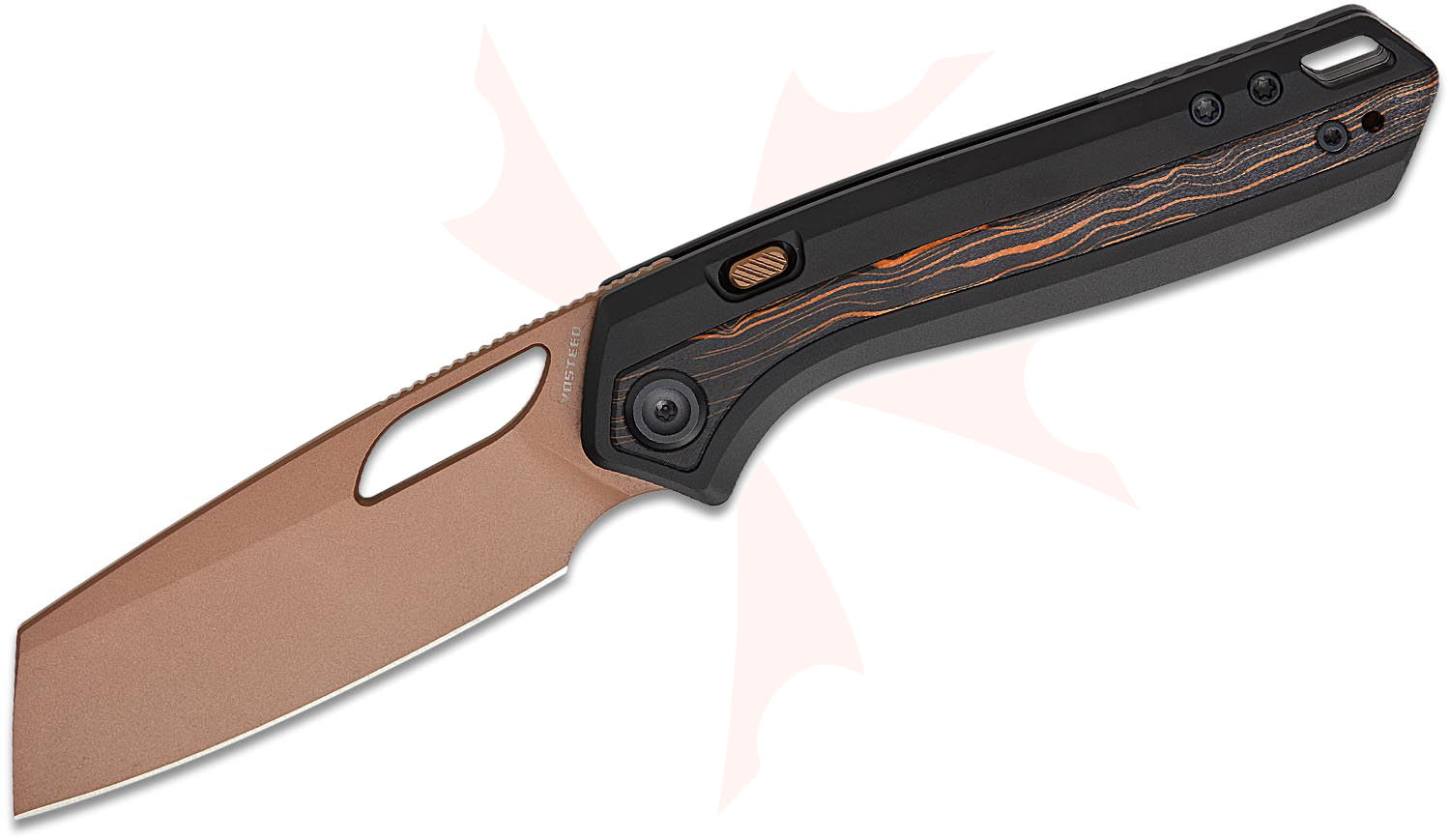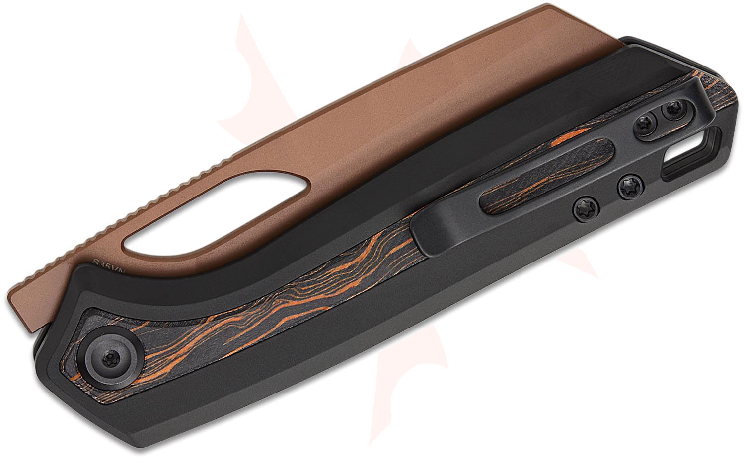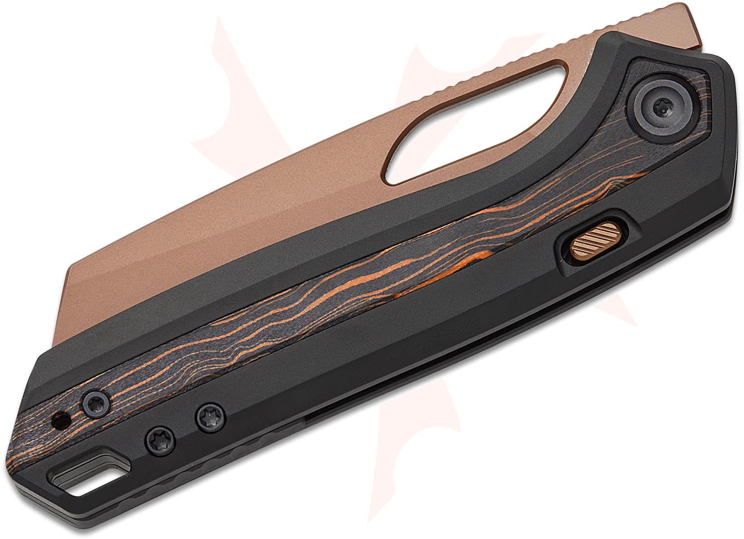 Vosteed Knives Kroc 329 Top Liner Lock Folding Knife 3.29" S35VN Copper Dune Reverse Tanto Blade, Black Aluminum Handles with Topographic G10 Inlays, Button Lock - A1810