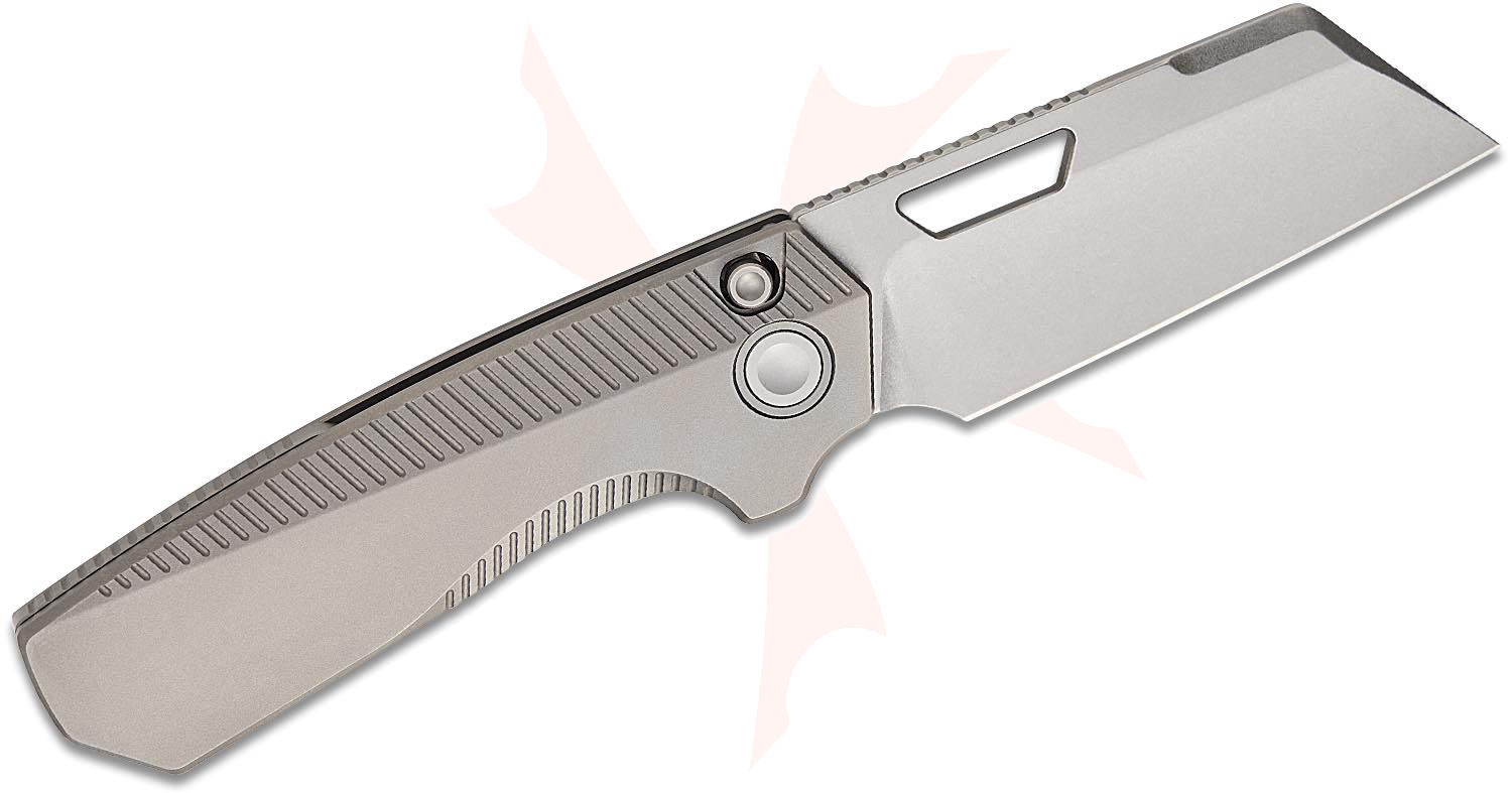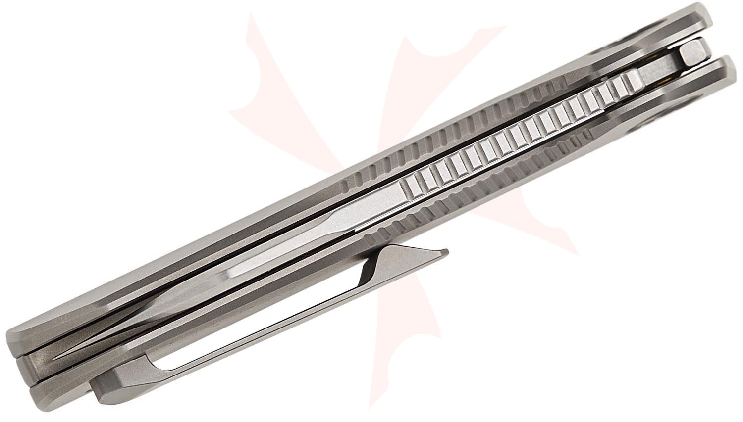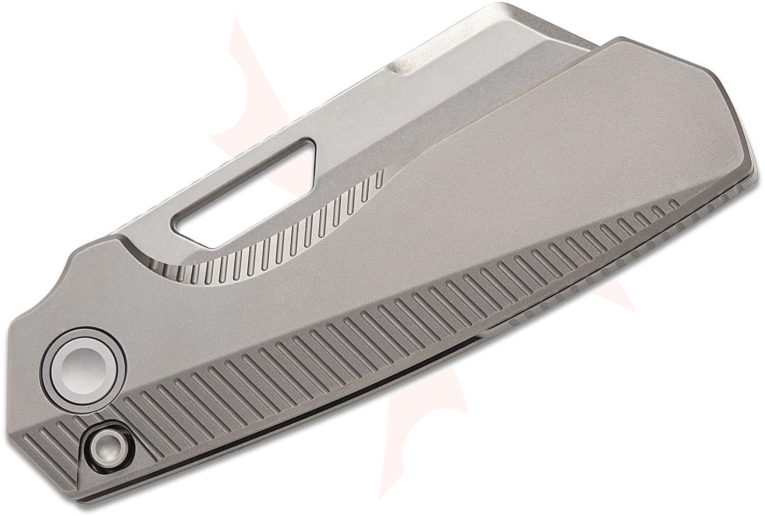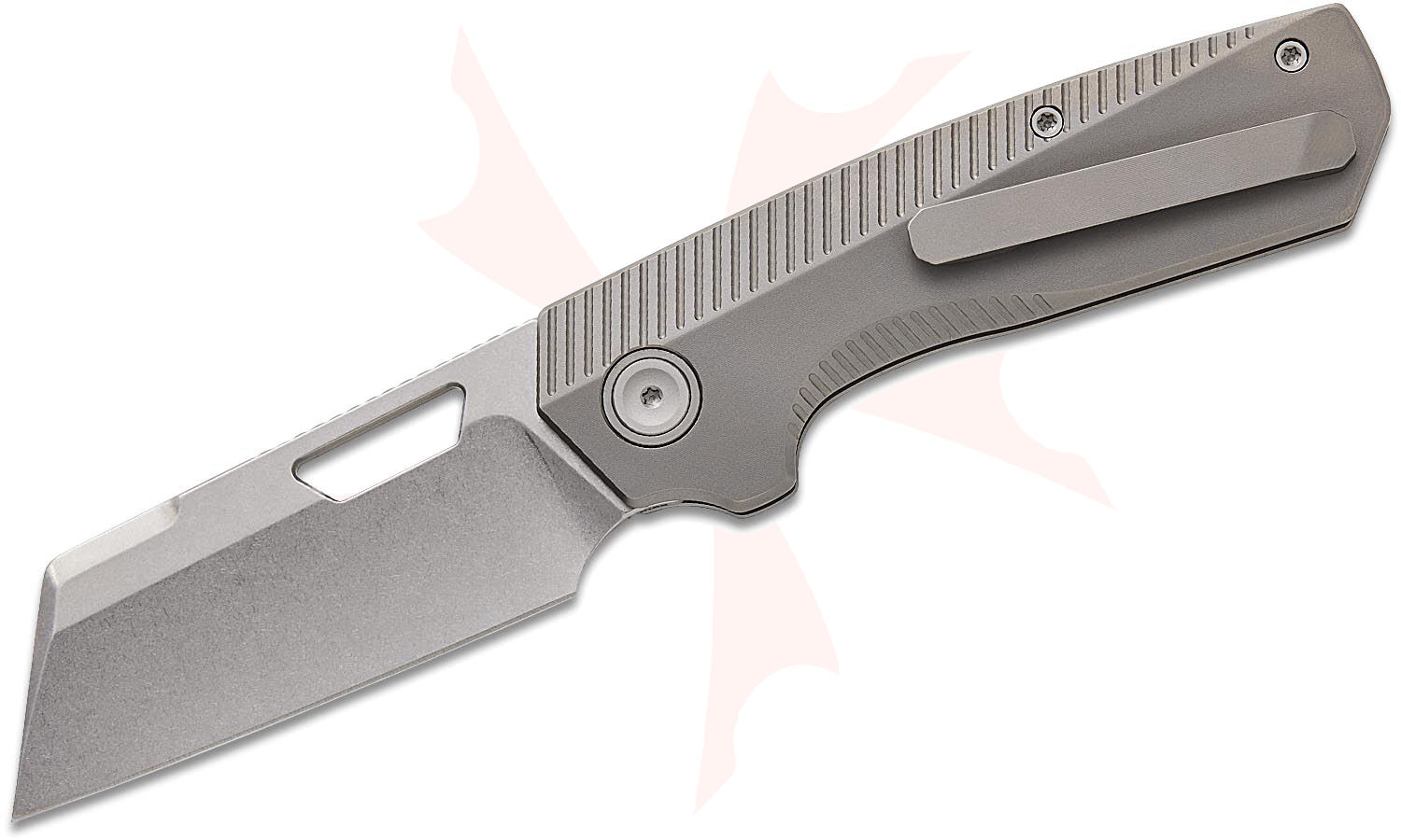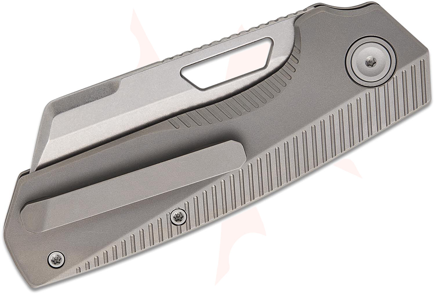 Vosteed Knives Divo Nip-L Left Handed Top Liner Lock Folding Knife 3.15" Elmax Stonewashed Modified Sheepsfoot Blade, Gray Machined Titanium Handles, Button Lock - A4205