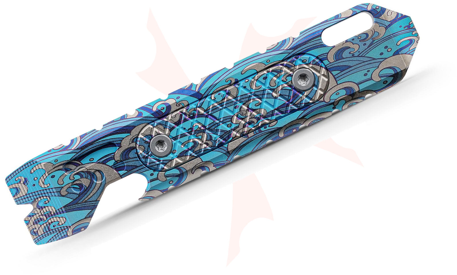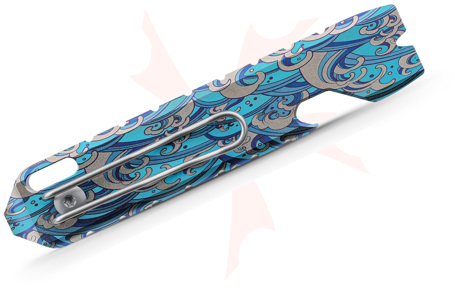 Vosteed Knives ReyLight Shark Bomb Pry Bar 2.0 - Sea Waves Titanium Mini Multi-Tool with Pocket Clip - X0172