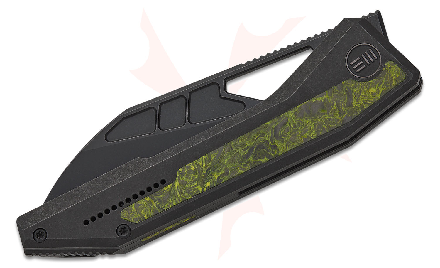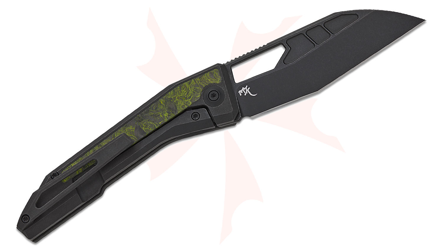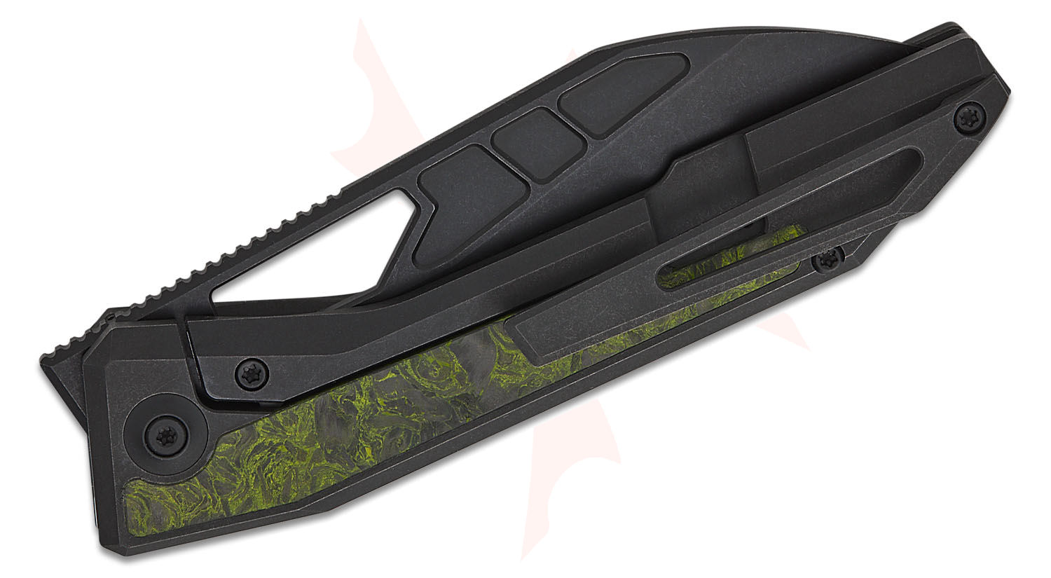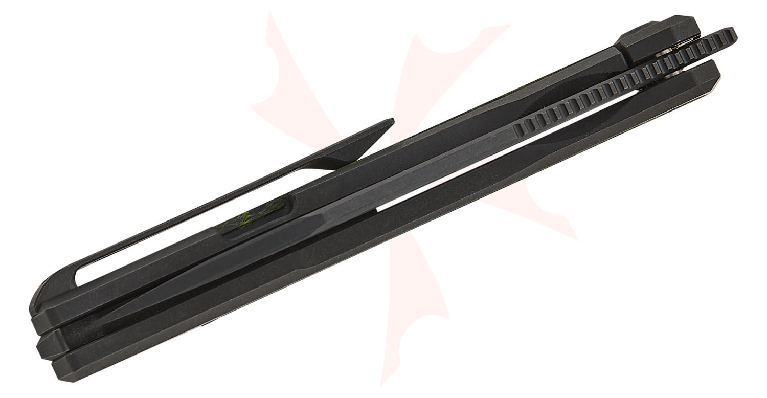 - Handle Material: Black Titanium with Green & Black Carbon Fiber Inlays