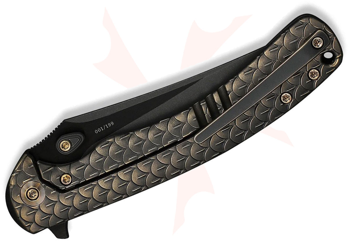 - Handle Material: Bronze & Black Dragon Scale Machined Titanium