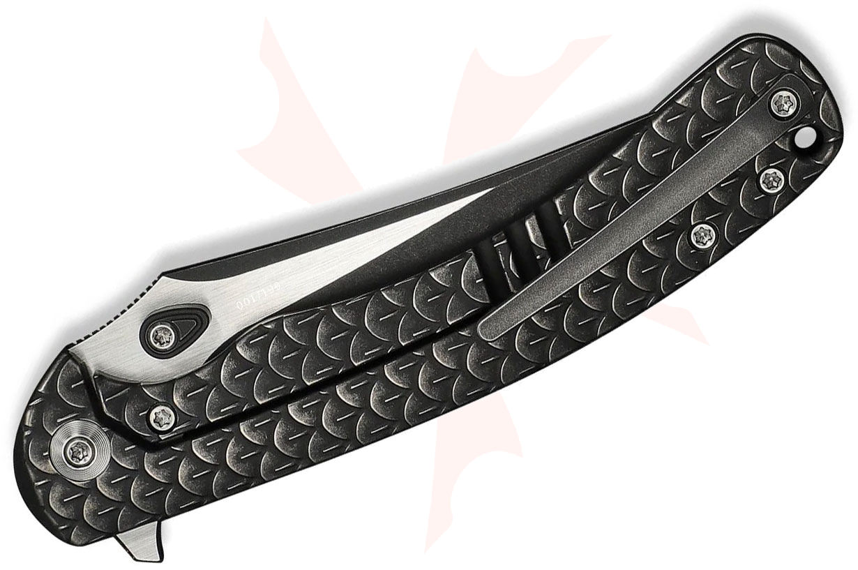 - Handle Material: Black Dragon Scale Machined Titanium
