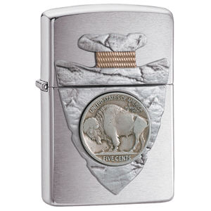 Zippo® Brushed Chrome, Piercing Buffalo Nickel Emblem - ZIP20516