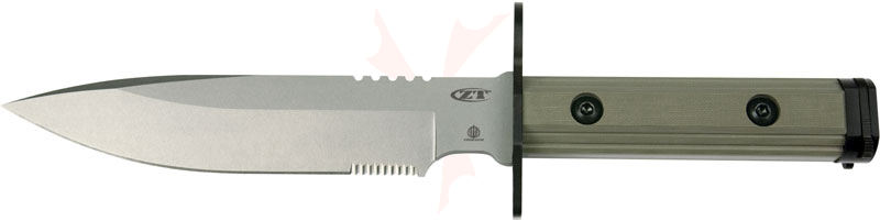 And that's vital. Because if it comes down to bayonet time, there's no room for compromise. The ZT-9 doesn't. A sturdy S30V stainless steel blade--a full 1/4 inch thick--is paired with Ranger Green G-10 scales. The ZT-9 mounts on the M-16/M-4/AR-15 series of rifles. When mounted, a full six inches of blade extends beyond the muzzle--more than today's standard-issue bayonets. Comes complete with hard Kydex sheath for use as a field knife. A Strider-ZT collaboration.